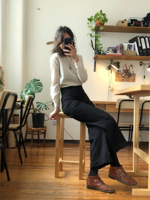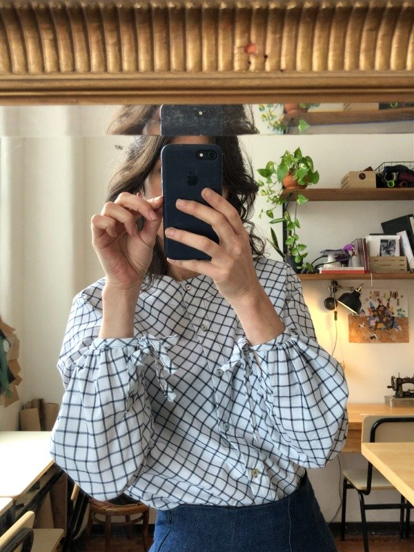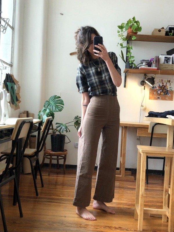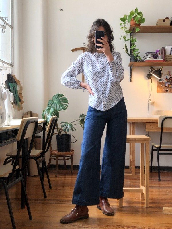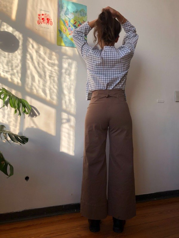 TALLER ONLINE para que aprendas a confeccionar este hermoso conjunto de Pantalón y Blusa. Es un Pantalón tiro extra alto, sin cintura, con vista para adentro que funciona a la vez de fajita. Lleva cierre invisible al costado y un detalle en la espalda. La Blusa Ana es una blusa básica con cuello a la base, cruce abotonado, frunce en las mangas que cierran con dos tiras que hacen moños (puede hacerse recta o sin el moño), manga calzada.