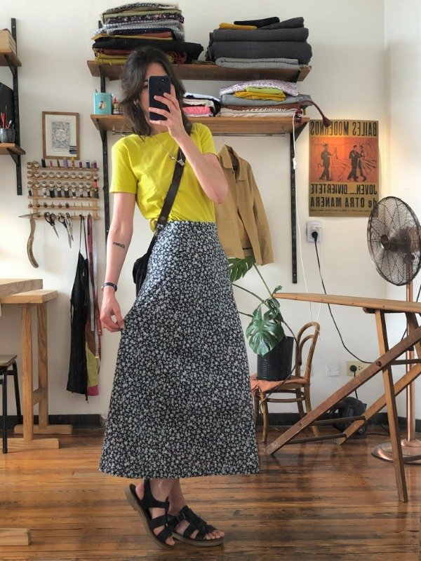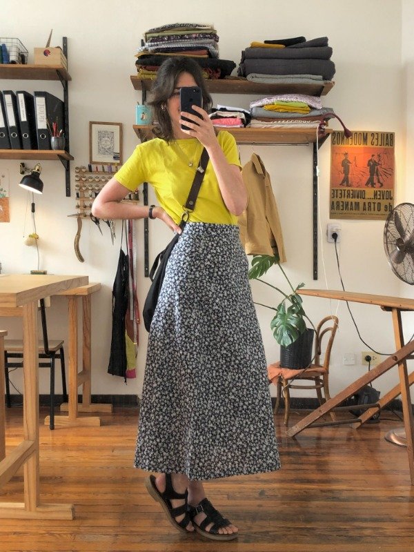 TALLER ONLINE para que aprendas a confeccionar esta Faldita larga que llamaremos Maia. Es una falda con un truco de patronaje que hace que sea evasé pero con el vuelo repartido mas armoniosamnete. Es tiro alto con cremallera invisible atrás.
